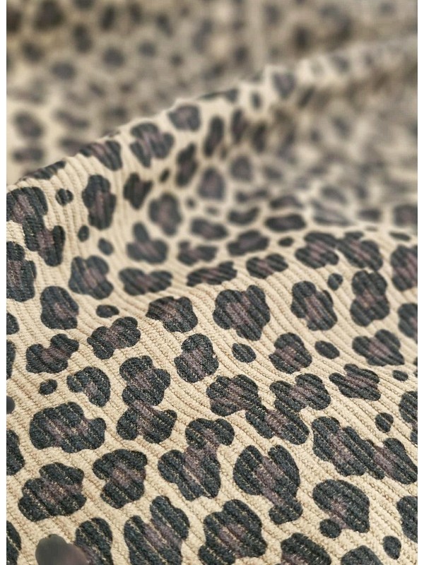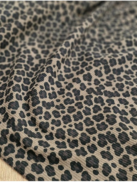 Velour cotelé à motif léopard brun foncé.