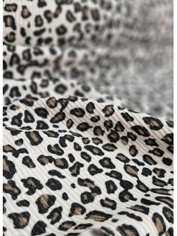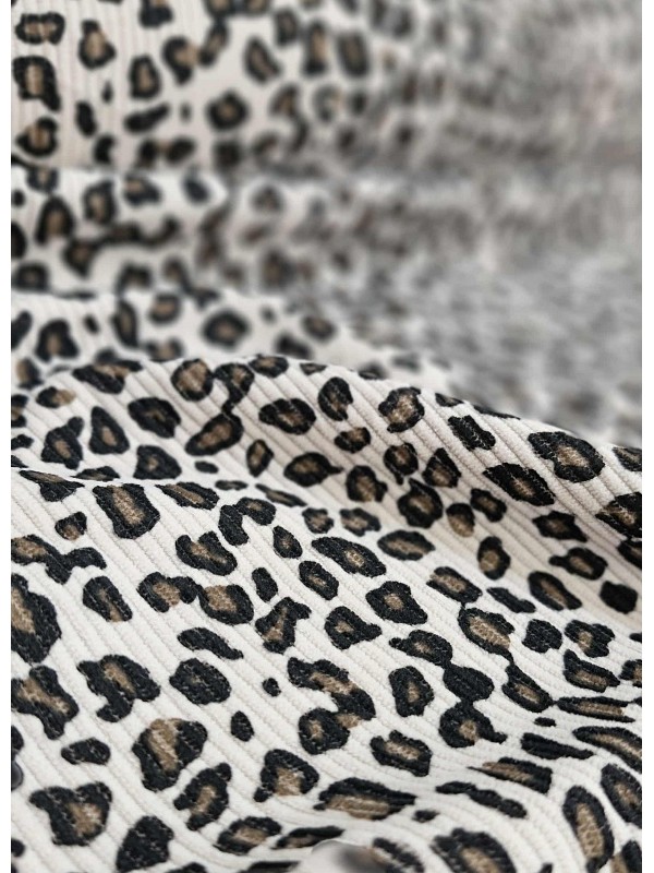 Velour cotelé à motif léopard blanc cassé.