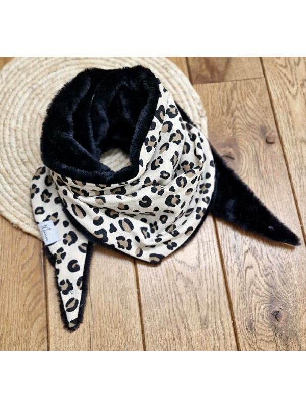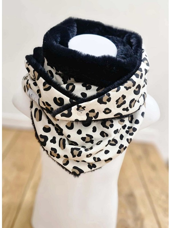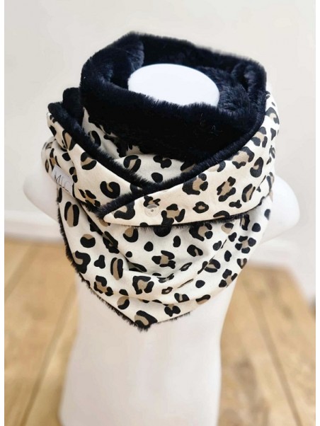 Il est composé d'une fausse fourrure ultra-douce noire et d'un tissu sweat leopard.