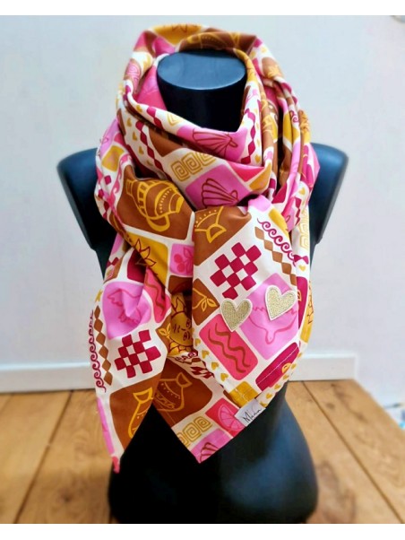 Pensé spécifiquement pour le printemps et les soirées d'été, ce foulard allie douceur et originalité.