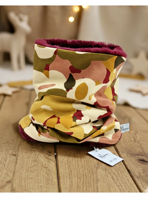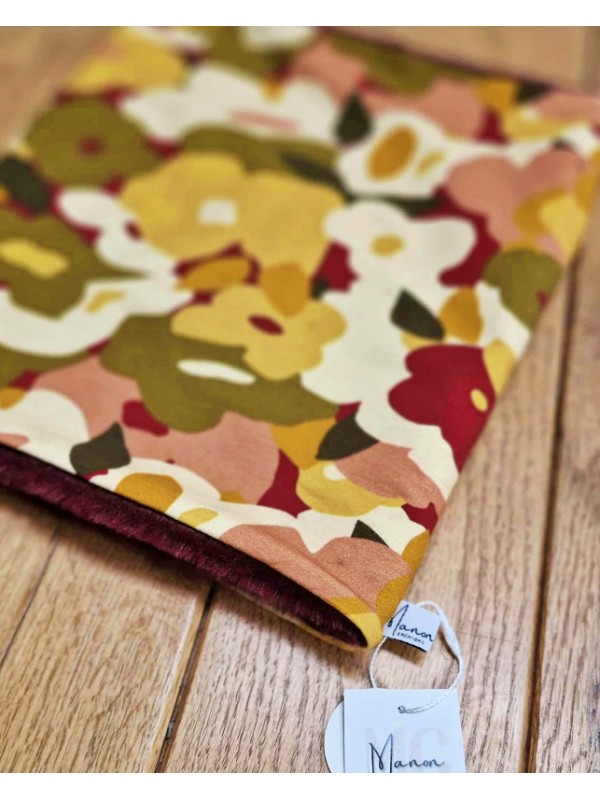 Snood en tissu jersey à motifs fleuris, doublé en fausse fourrure ultra-douce bordeaux.