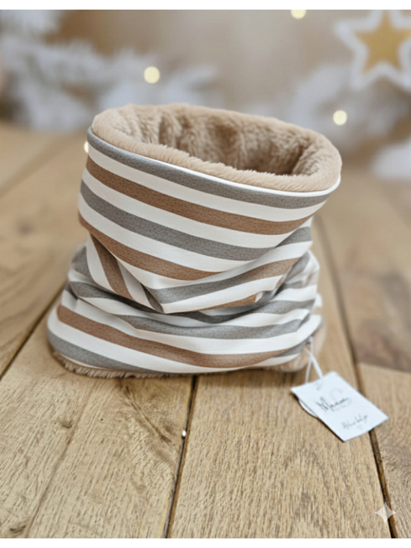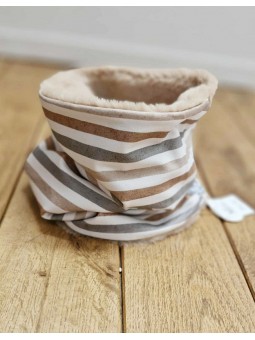Snood en tissu jersey ligné, doublé en fausse fourrure ultra-douce bleu beige.